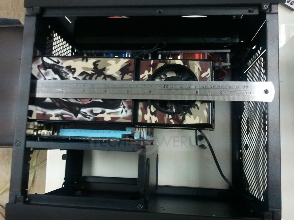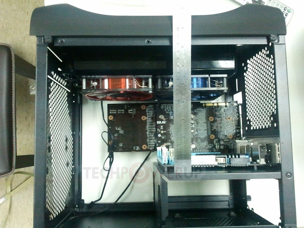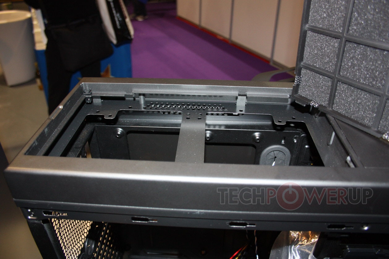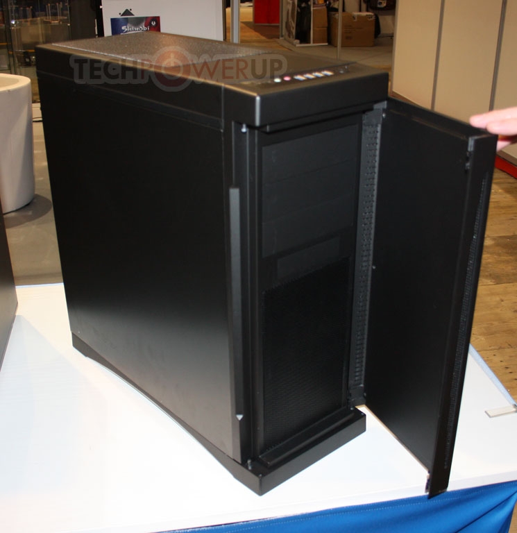首先是外形比较讨喜的Mini-ITX规格小机箱,正式命名是Prodigy(神童)。此前TechPowerup称该产品可以兼容尺寸较大的显卡和CPU散热器,从内部实拍照片来看的确如此:由于主板的安装位放在了电源的上方,显卡即使是Radeon HD 6990也不会遇到什么安装的问题,一般的中高端塔式散热器安装也没什么压力,还可兼容240mm冷排。