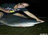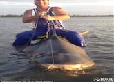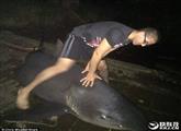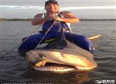 澳洲渔民捉凶猛牛鲨调戏 骑在头上耍威风