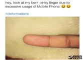 经常玩大屏手机的你,赶紧看看自己的小指头吧,是不是已经变形了呢? 手机尺寸越来越大,单手握持的舒适性却一直在降低,最近,有许多网友发现,自己的小手指竟然不知不觉的出现了“变形&...【