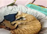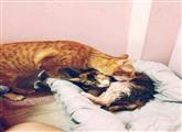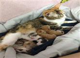 猫爸帮猫妈接生并照顾孩子 这画面太温馨